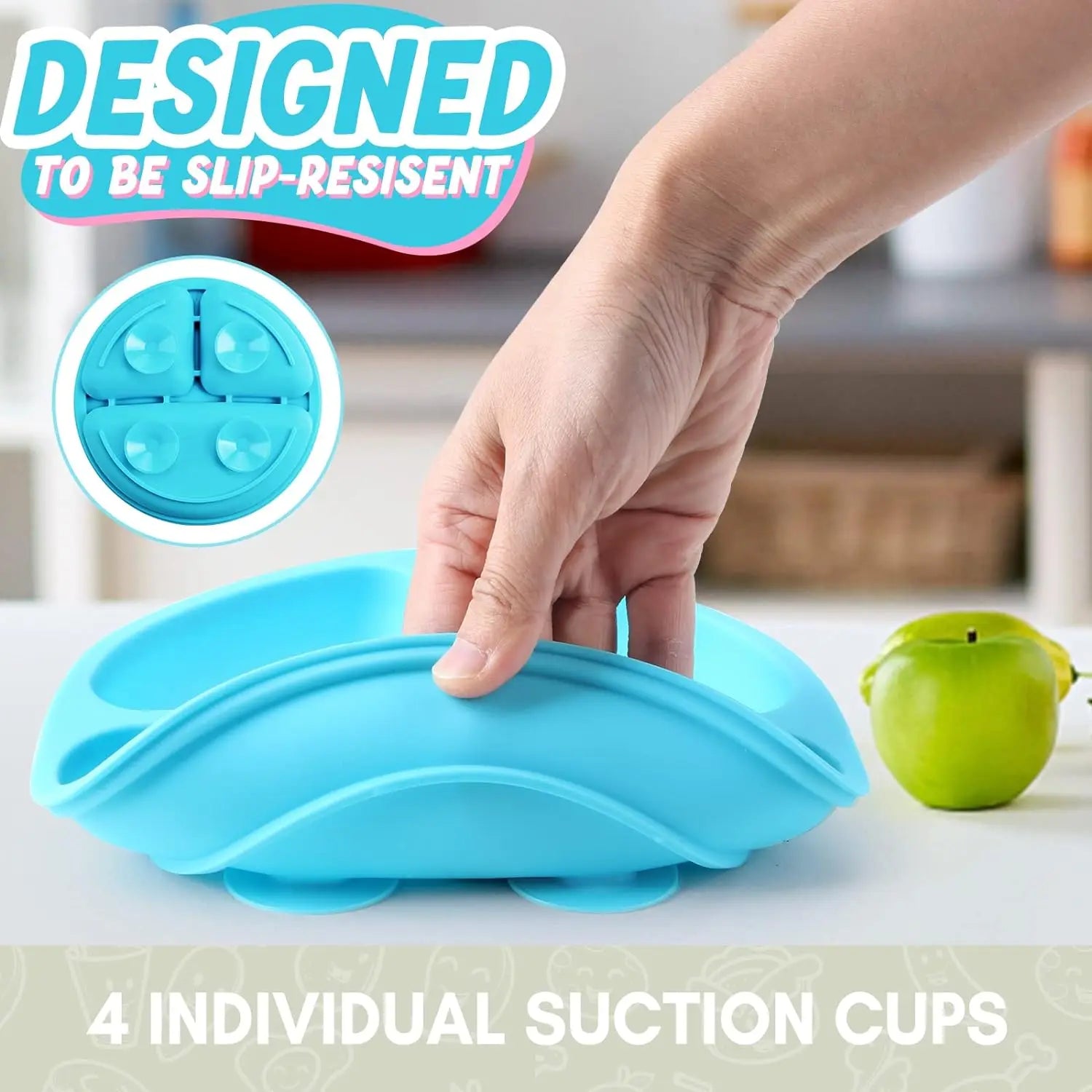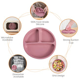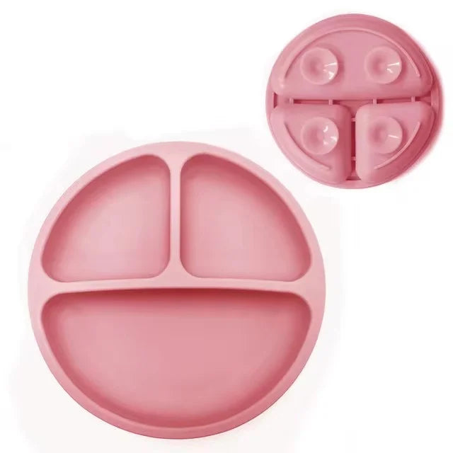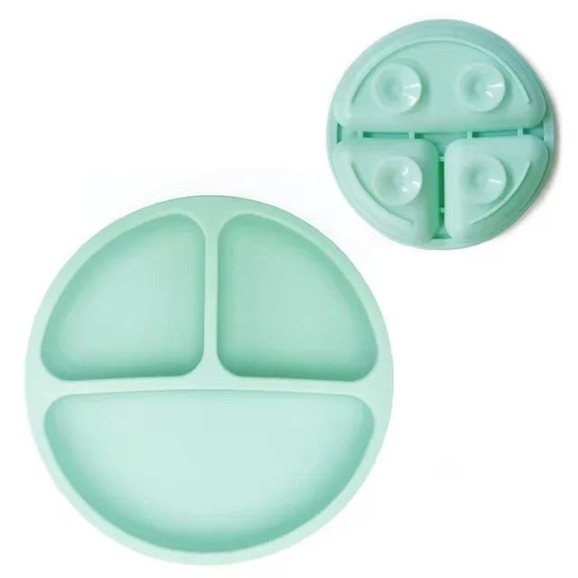 Der Baby-Silikon-Essteller mit integriertem Säuglingsgeschirr ist die perfekte Lösung für stressfreie Mahlzeiten. Mit einem starken Saugnapf an der Unterseite bleibt der Teller sicher auf dem Tisch oder Hochstuhl befestigt und verhindert Verrutschen oder Umkippen. Das Anti-Rutsch- und Anti-Drop-Design macht ihn ideal für Babys und Kleinkinder, die das selbstständige Essen lernen.