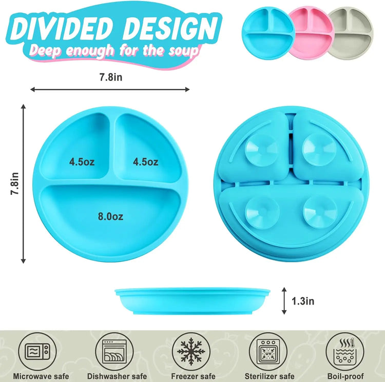Hergestellt aus lebensmittelechtem, BPA-freiem Silikon, ist der Teller sicher, langlebig und leicht zu reinigen – spülmaschinen- und mikrowellengeeignet. Das durchdachte Design mit mehreren Fächern ermöglicht es, verschiedene Lebensmittel getrennt anzubieten. Funktional, praktisch und kinderfreundlich – ein unverzichtbares Geschirr für die ersten Essensabenteuer Ihres Kindes.