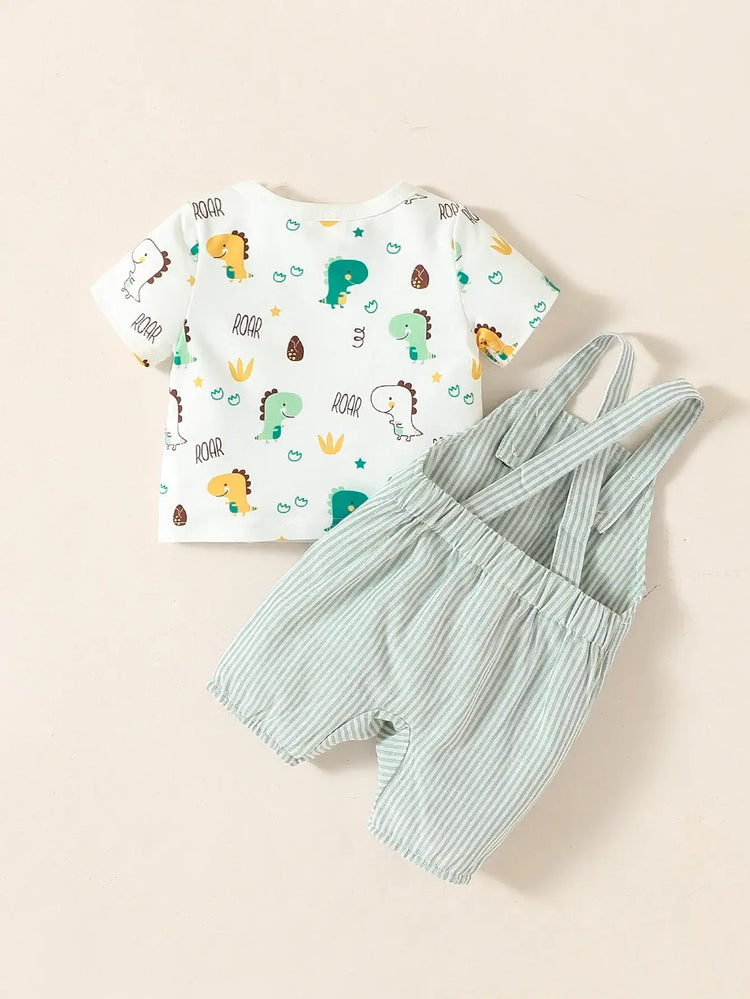 Der Baby Jungen Sommer Anzug mit Kurzarmshirt und süßem Cartoon-Tiermotiv ist das perfekte Outfit für warme Tage. Ergänzt durch eine passende Hose mit dekorativen Hosenträgern entsteht ein liebevoll gestalteter Hosenträger Anzug, der Stil, Komfort und kindgerechtes Design vereint. Dein kleiner Schatz fühlt sich wohl, bewegt sich frei und kann unbeschwert spielen – ein Outfit, das für Sommerabenteuer gemacht ist.